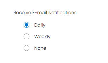 Head to your user profile, scroll down to the "Receive Email Notifications" toggle, and select how often you would like to receive notifications.